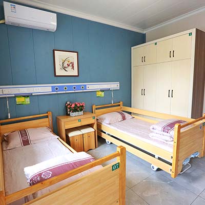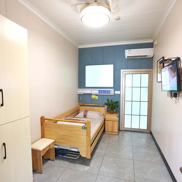 卧室均配有专用护理功能床、床头柜、衣柜、电视机、座椅、空调、紧急呼叫系统。所有房间均配有独立卫生间,24小时热水供应和全套新风装置和取暖设备。